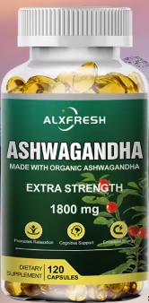 Alxfresh Pure Ashwagandha Powder & Root Extract Oil Capsules 1800mg with Black Pepper- Vegen Dietary Supplements 60/120 Count